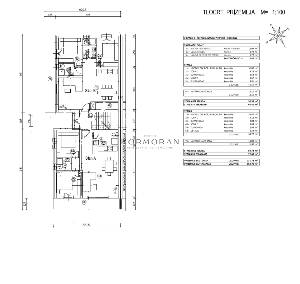 Das Gebäude befindet sich in Murine, nur 2.000 m vom Zentrum von Umag entfernt, und besteht aus insgesamt 8 Wohneinheiten – 4 im Erdgeschoss und 4 im Obergeschoss. Jede Wohnung ist auf ihre Weise einzigartig und bietet einen Meerblick. Einheit B besteht aus einem Flur, einem Wohnzimmer mit Küche, 2 Schlafzimmern, 2 Badezimmern und einer Terrasse mit einer Fläche von 11,88 m2 sowie zusätzlich einem Kellerraum von 11 m2. Jede Wohnung verfügt über 1 Parkplatz mit Möglichkeit zum Laden eines Elektroautos, im Apartment wird eine Fußbodenheizung sowie eine Inverter-Klimaanlage (Heizung und Kühlung) installiert. In unmittelbarer Nähe des Objekts befinden sich Einrichtungen, die den Alltag erleichtern: Strand 1.000 m, Restaurant 50 m, Bäckerei 50 m und Spielplatz 50 m.