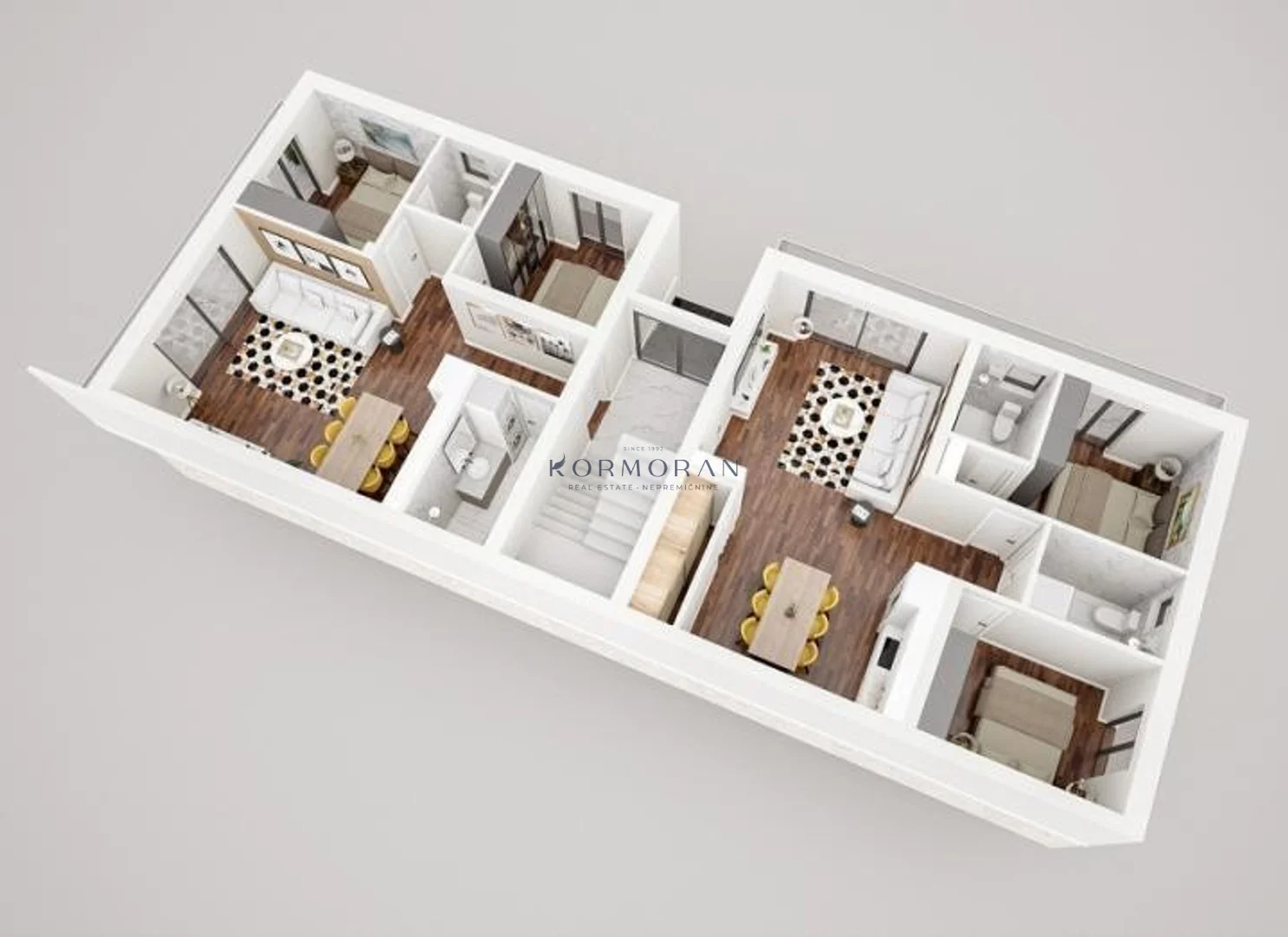 Das Gebäude befindet sich in Murine, nur 2.000 m vom Zentrum von Umag entfernt. Das Gebäude besteht aus 8 Wohneinheiten, davon 4 Einheiten im Erdgeschoss und 4 Einheiten im Obergeschoss.