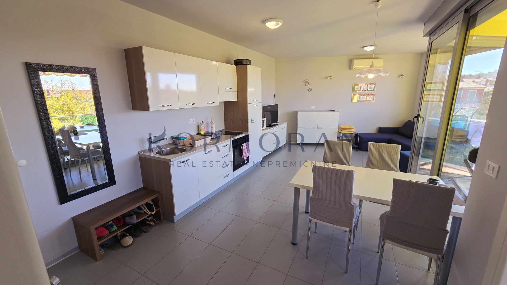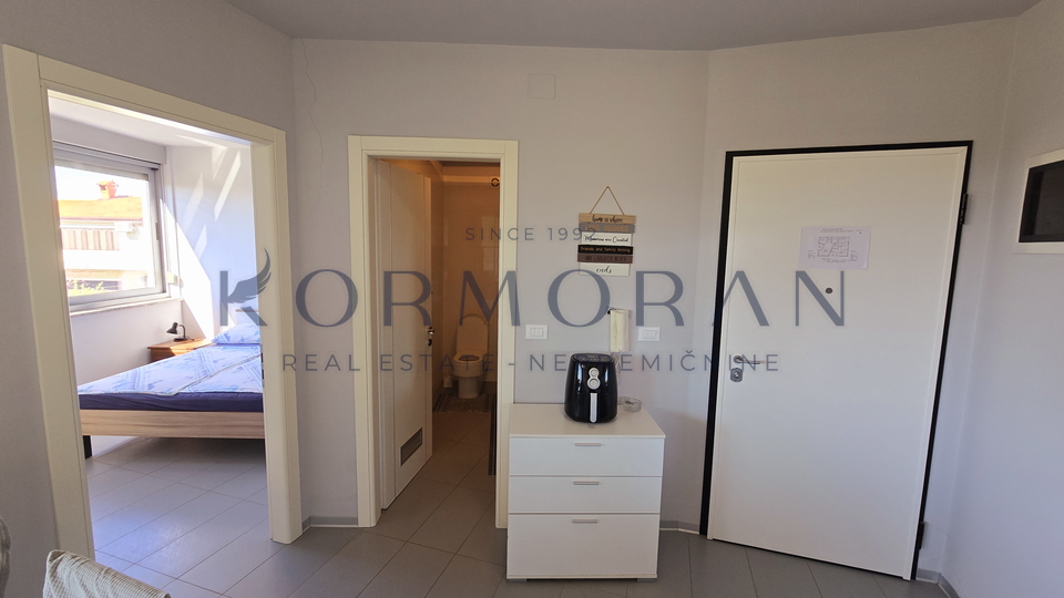 For sale is an apartment with an area of 47 m2, located on the first floor in a quiet part of Zambratija. This 1.5-room apartment (1R+DB) offers a functional layout with one bedroom, making it suitable for various buyer profiles.