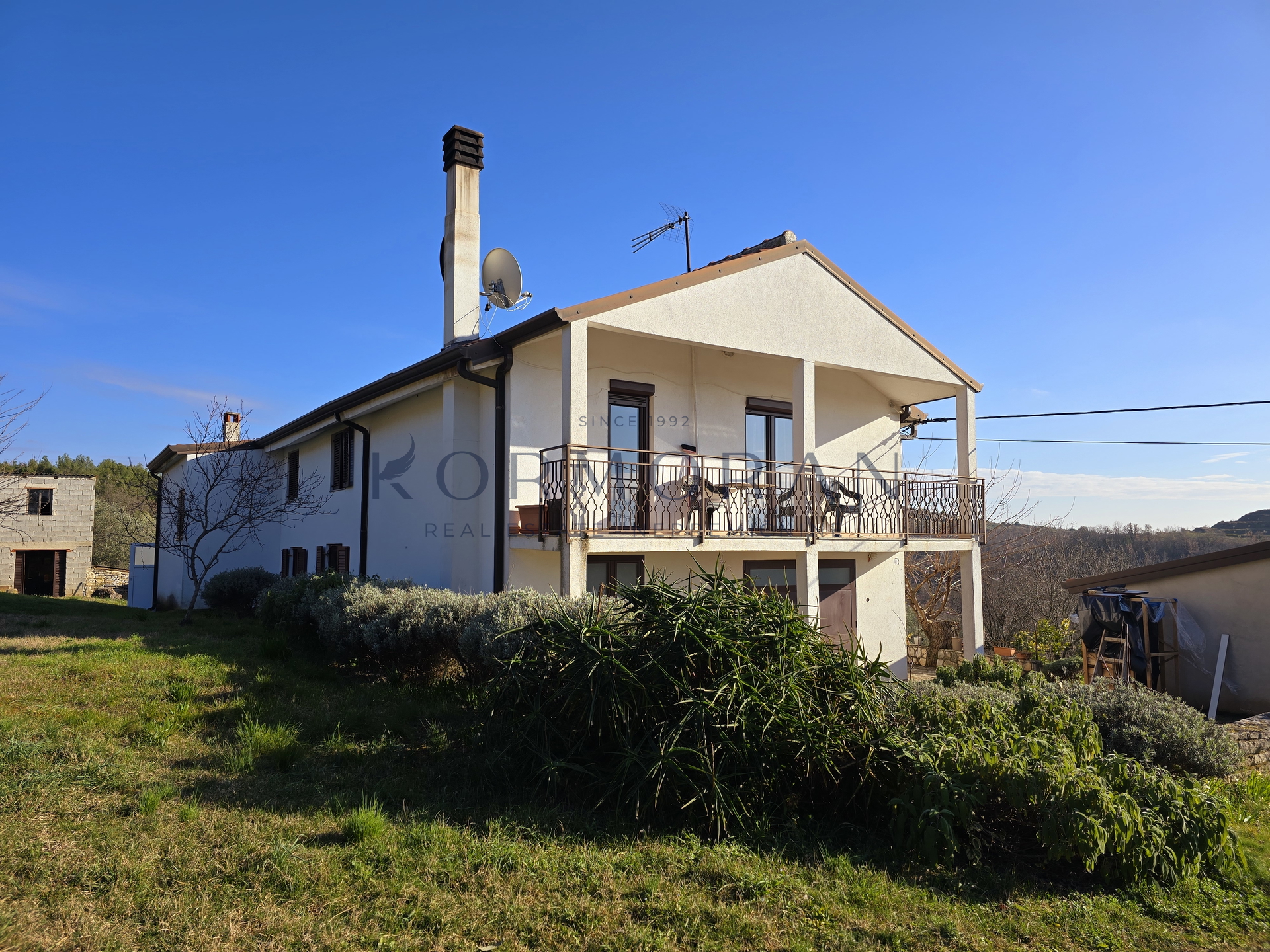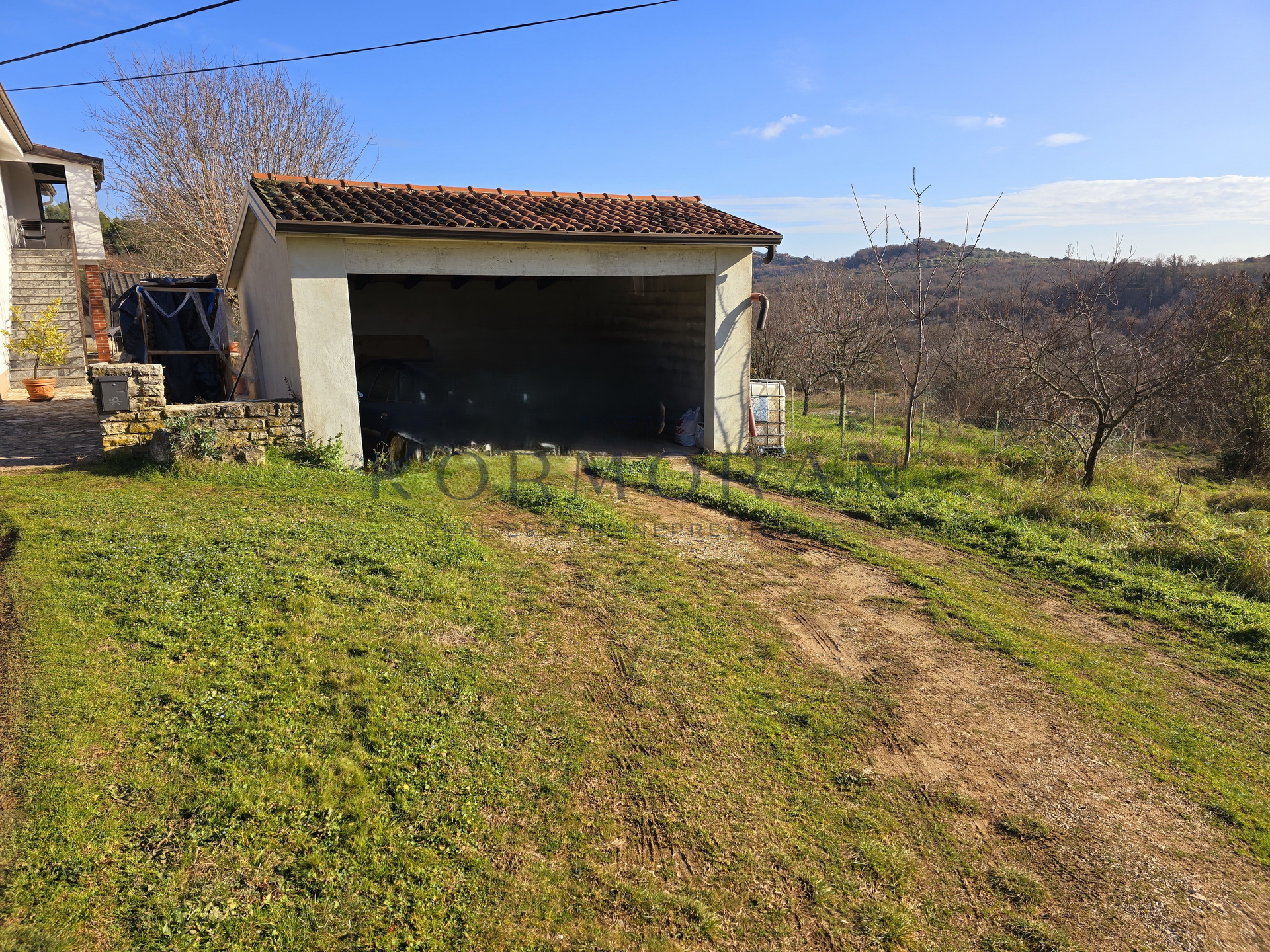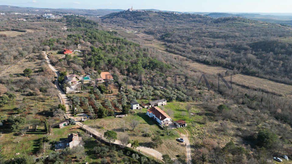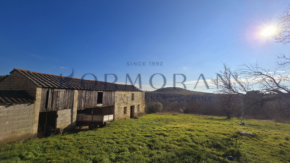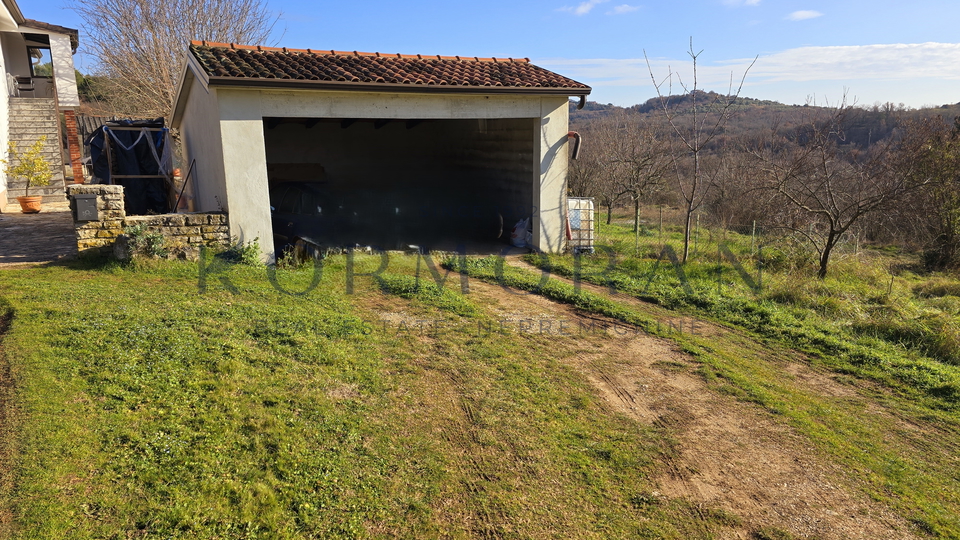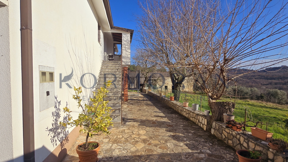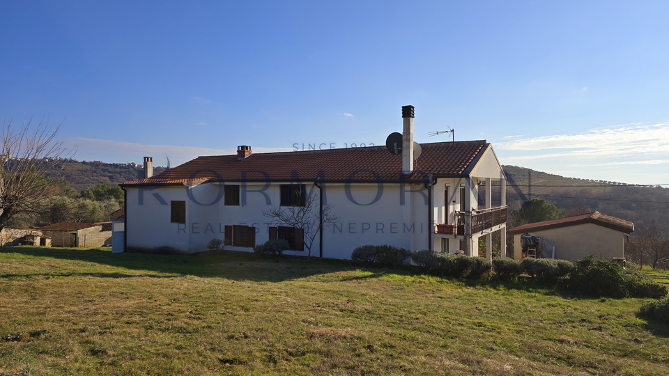 A detached house with a surface area of 172 m2 is for sale, located in a quiet part of Buje, with a total plot area of 1,928 m2. This property offers an exceptional combination of privacy and comfortable living space, ideally positioned for those seeking a peaceful environment with a beautiful view and plenty of natural light thanks to its southern orientation. Next to the house, there is also pastureland (agricultural land) totaling 1,879 m2, making a total of 4,011 m2, and an olive grove of 4,142 m2 with an agricultural building of 160 m2.