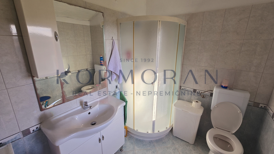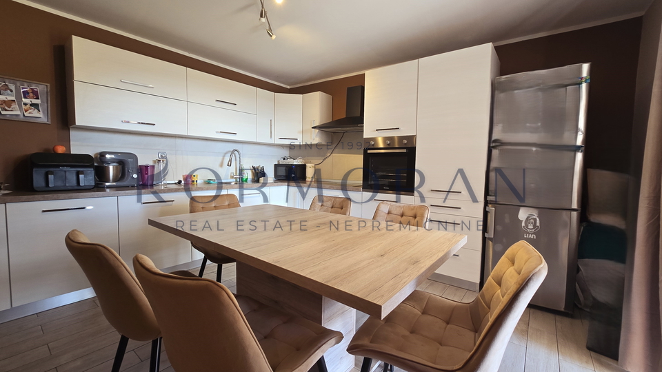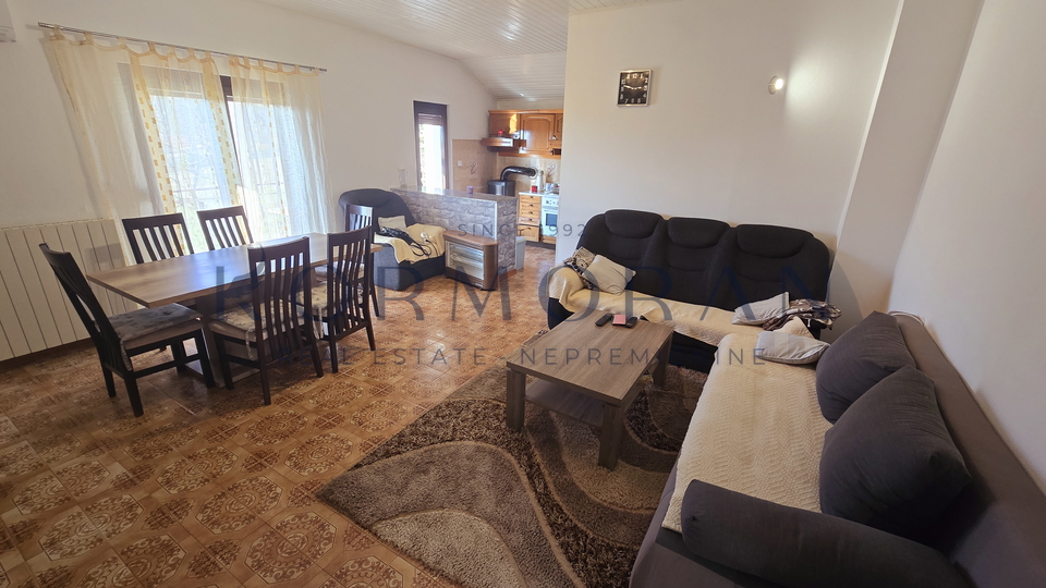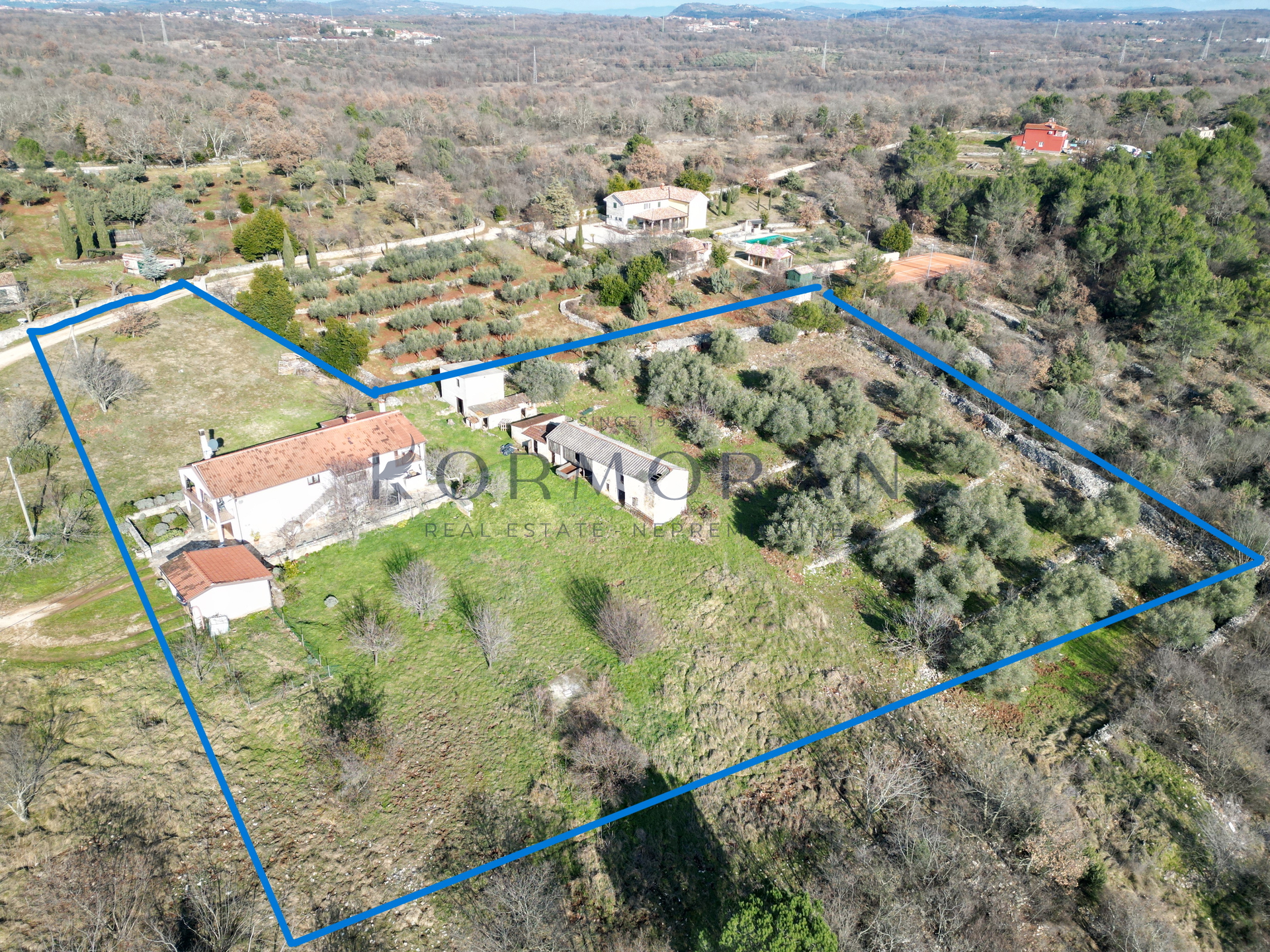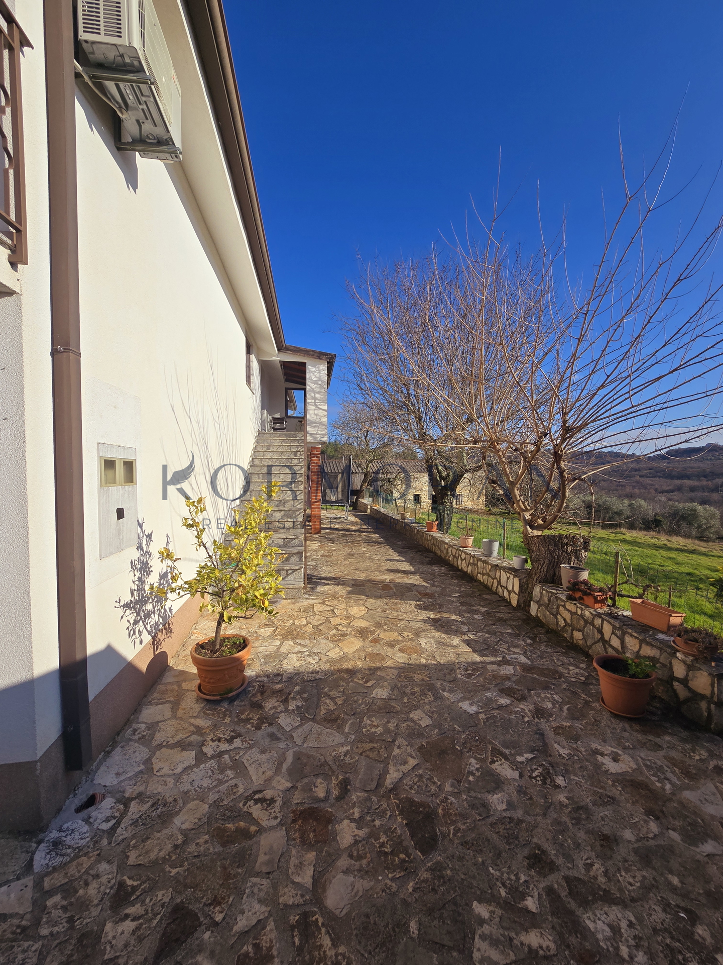 A detached house with a surface area of 172 m2 is for sale, located in a quiet part of Buje, with a total plot area of 1,928 m2. This property offers an exceptional combination of privacy and comfortable living space, ideally positioned for those seeking a peaceful environment with a beautiful view and plenty of natural light thanks to its southern orientation. Next to the house, there is also pastureland (agricultural land) totaling 1,879 m2, making a total of 4,011 m2, and an olive grove of 4,142 m2 with an agricultural building of 160 m2.