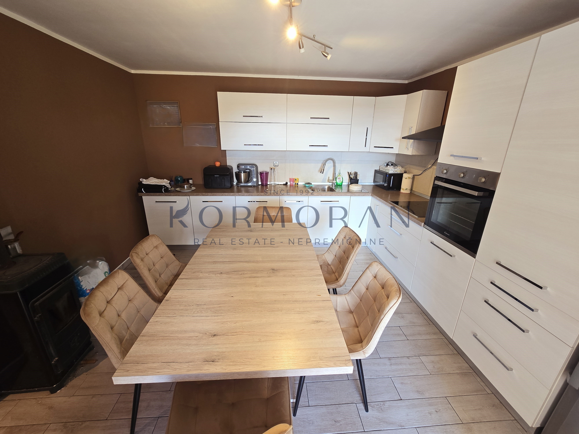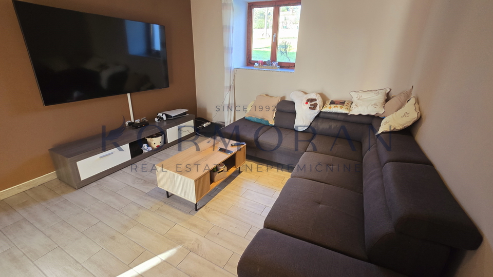 Heating and cooling are provided by an air conditioning unit and a solid fuel system, ensuring comfort throughout the year. The accommodation is situated in a quiet and very sunny location with a beautiful view, making this property particularly attractive, and the proximity to nature further enhances the quality of life.