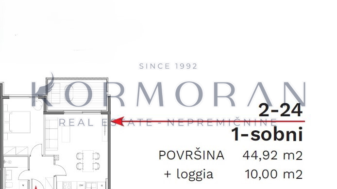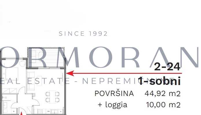 Stan je 1,5-sobni (1S+DB), što omogućuje funkcionalnu organizaciju prostora i udobnost boravka. Dio stana čini i prostrani balkon površine 10 m2, koji dodatno obogaćuje životni prostor i pruža mogućnost opuštanja na otvorenom.