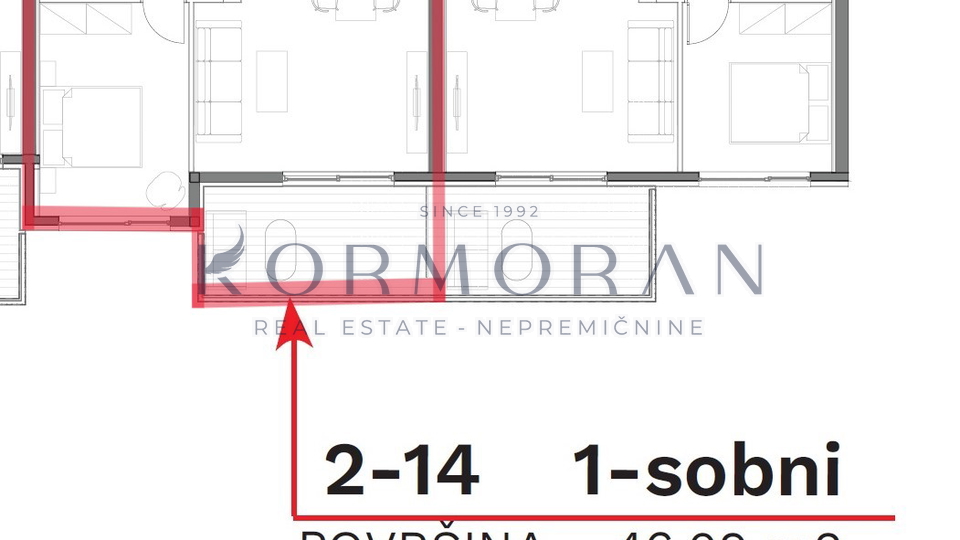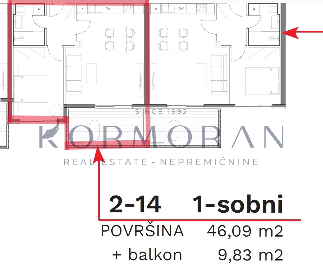 Stan se sastoji od jedne spavaće sobe, dok jugoistočna orijentacija omogućuje obilje prirodnog svjetla tijekom dana, što dodatno doprinosi vrlo sunčanoj atmosferi prostora. Prostrani balkon veličine 9,83 m2 pruža dodatni prostor za opuštanje i uživanje na otvorenom.