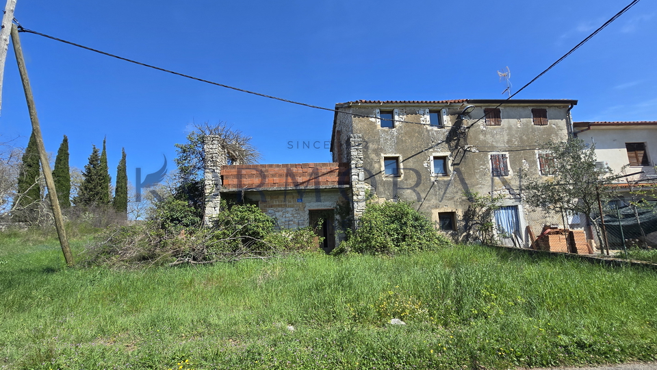 Prodaje se dvojna kuća u Škarlaniji pored Bušćine površine 95 m2 na zapadnoj strani Umaga, smještena na prostranoj parceli od 1762 m2. Ova nekretnina nudi mirnu lokaciju, obilje sunčeve svjetlosti i lijep pogled, što je čini privlačnim izborom za ugodan život ili investiciju.