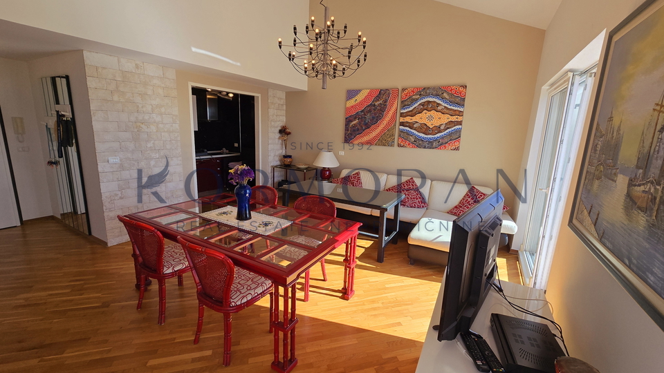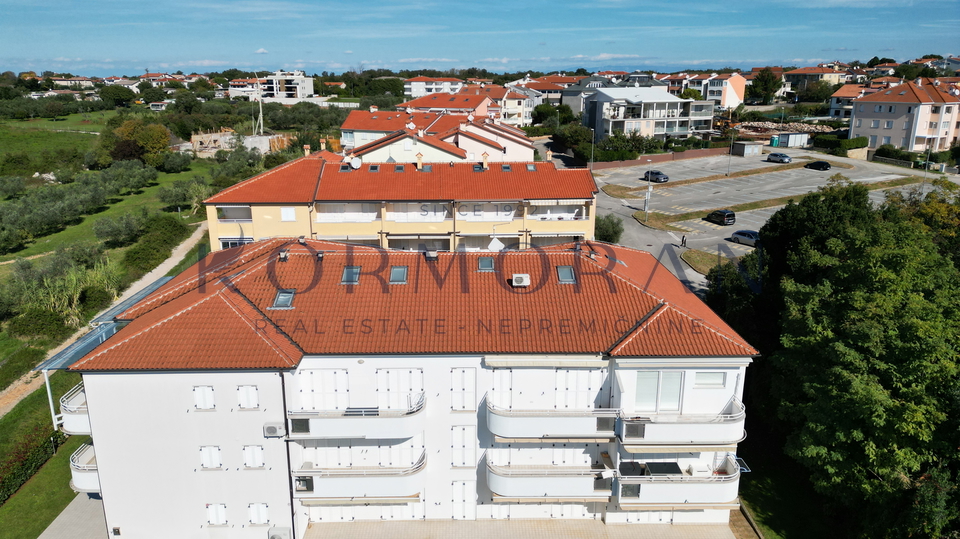 Prodaja se 3,5-sobno stanovanje površine 80 m2, umeščeno v drugem nadstropju stavbe, zgrajene leta 2007, na mirni in privlačni lokaciji v Umagu, Zambratiji. Ta nepremičnina izstopa po zelo sončni južni legi in ponuja lep pogled, vključno z razgledom na morje.